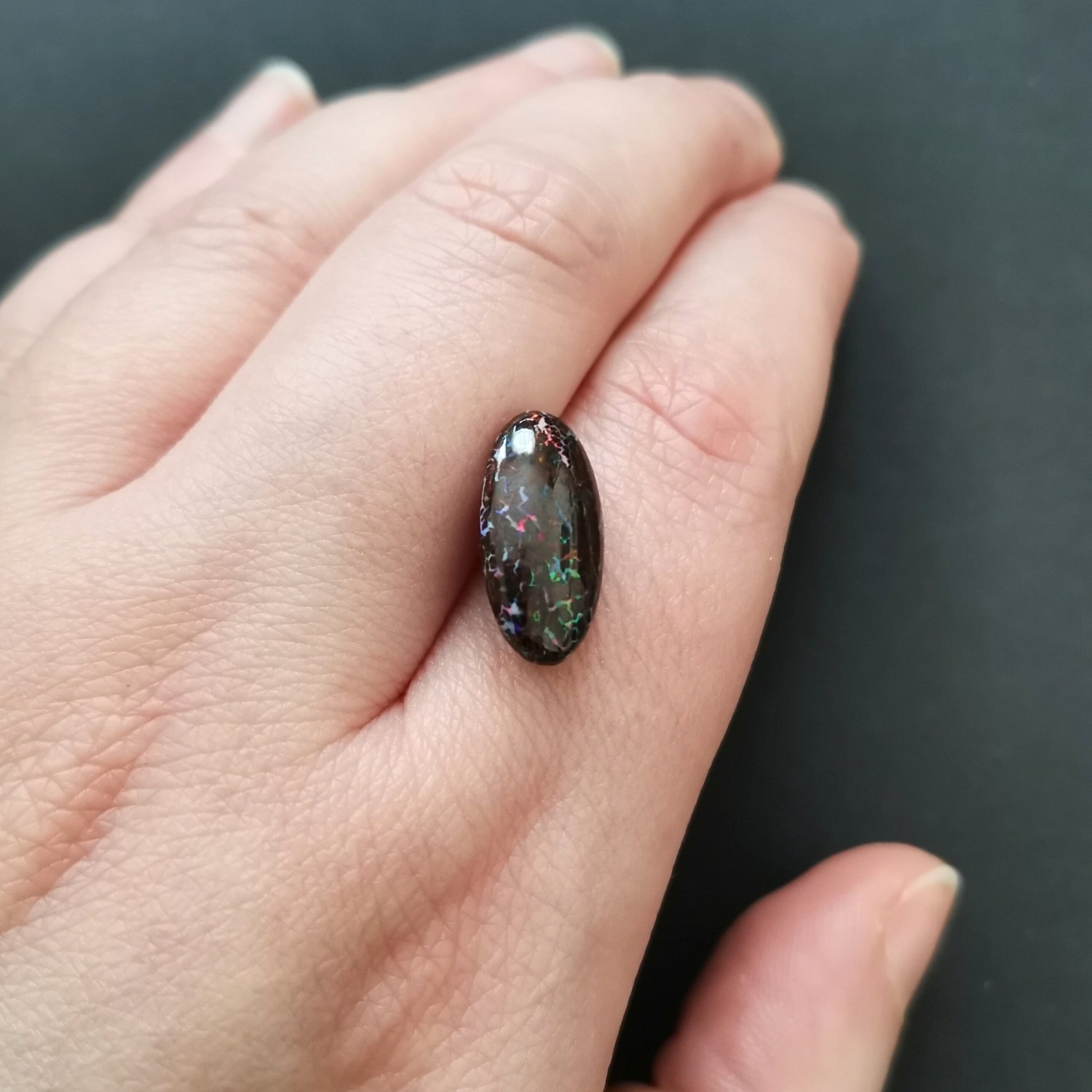 This loose, pre-owned freeform boulder opal, in an excellent condition, is ideal for a one-of-a-kind jewellery make with a sustainable edge.