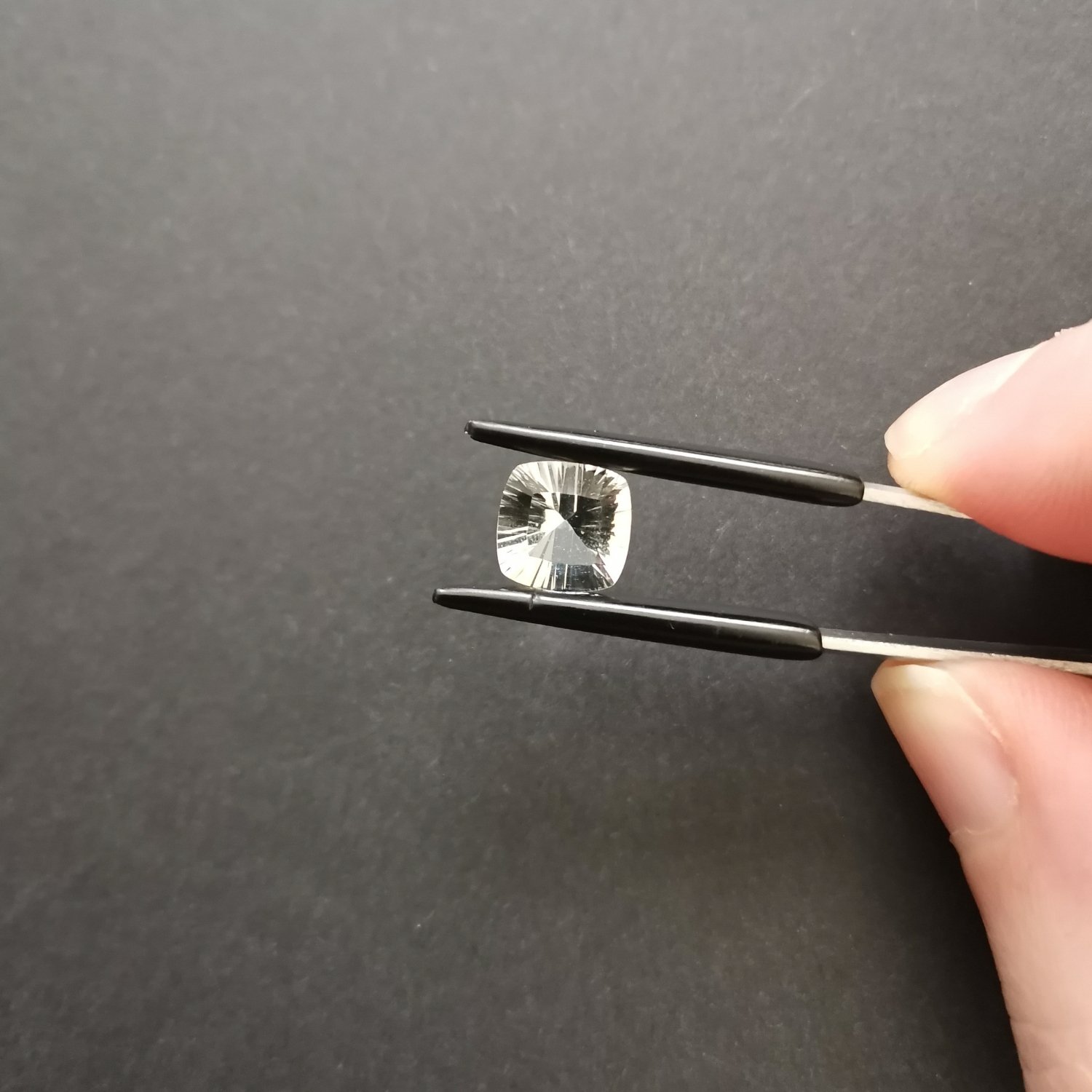 This loose, pre-owned faceted clear quartz square, in an excellent condition, is ideal for a one-of-a-kind jewellery make with a sustainable edge.