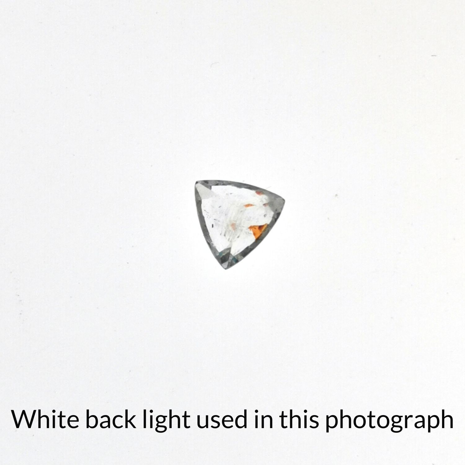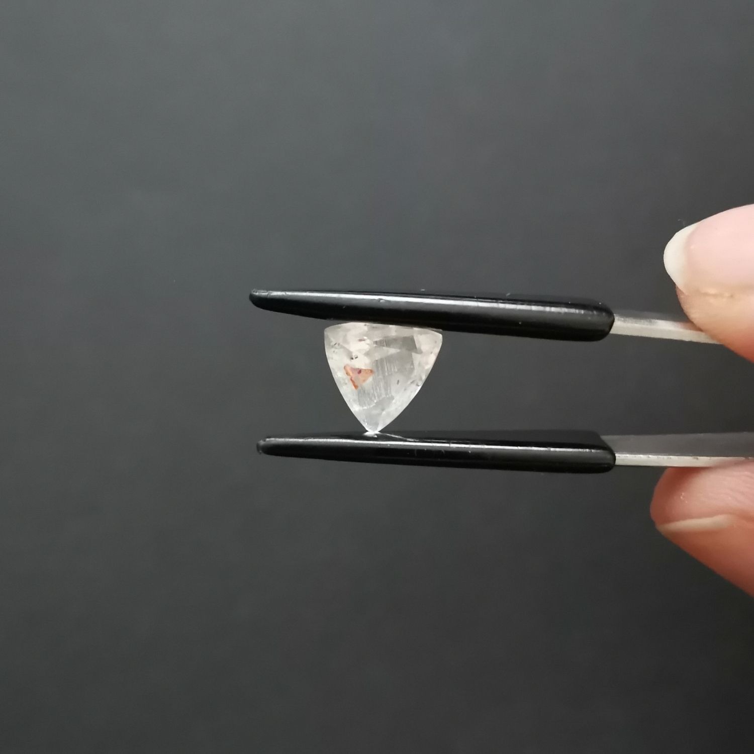 This loose, pre-owned clear quartz triangle, in an excellent condition, is ideal for a one-of-a-kind jewellery make with a sustainable edge.