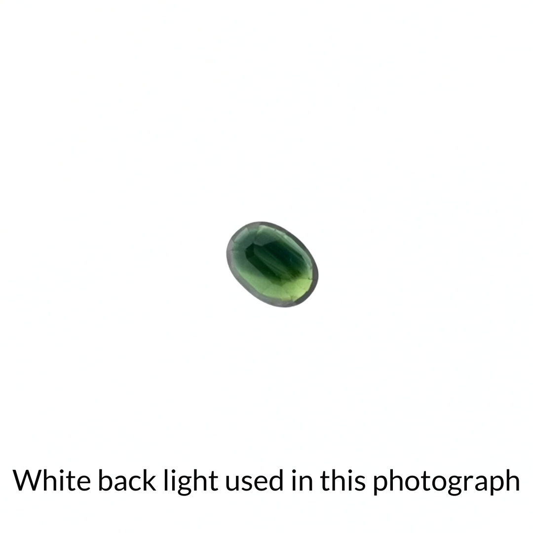 This sapphire is technically a parti sapphire, as it’s made of 2 colours, green with a streak of blue at it’s core. The blue is only visible from some angles though.
