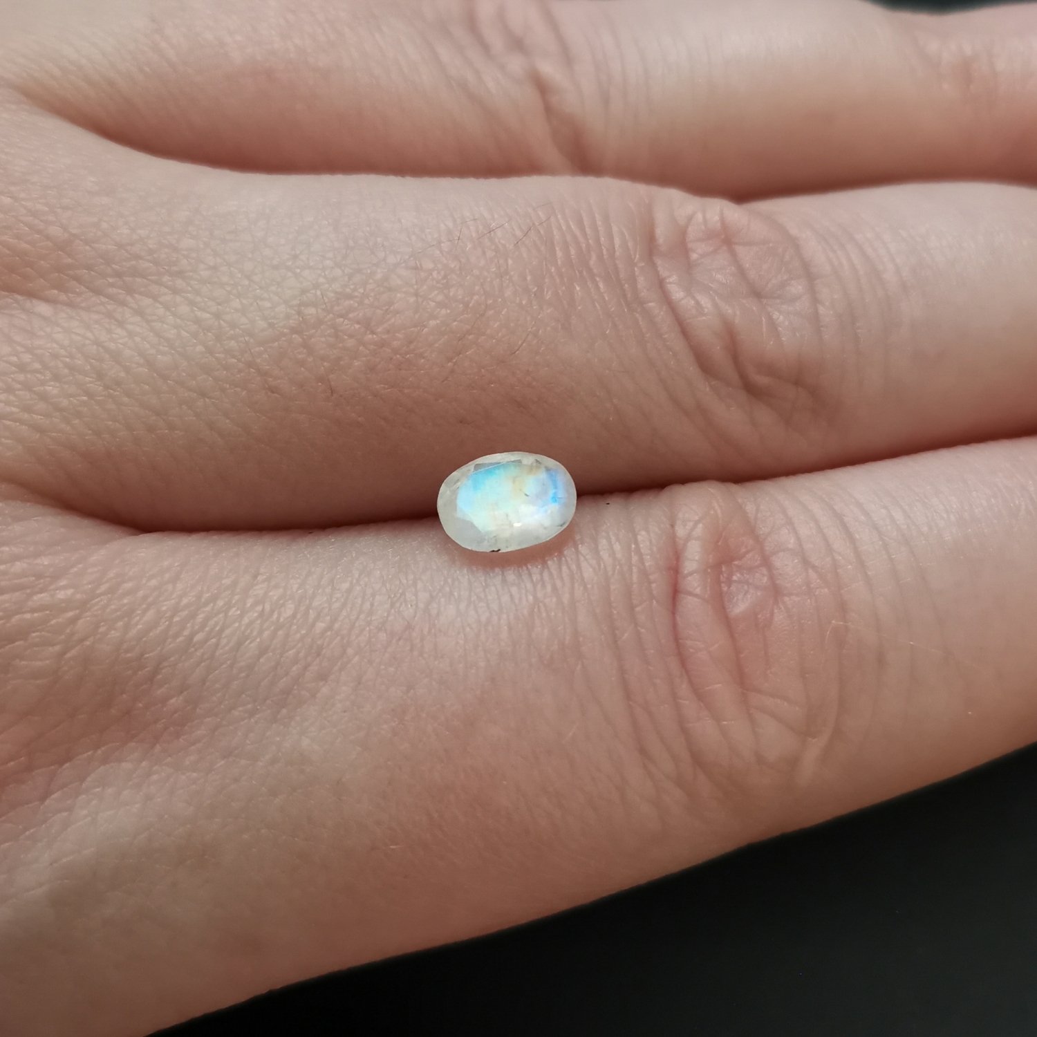 This loose, pre-owned faceted oval moonstone, in an excellent condition, is ideal for a one-of-a-kind jewellery make with a sustainable edge.