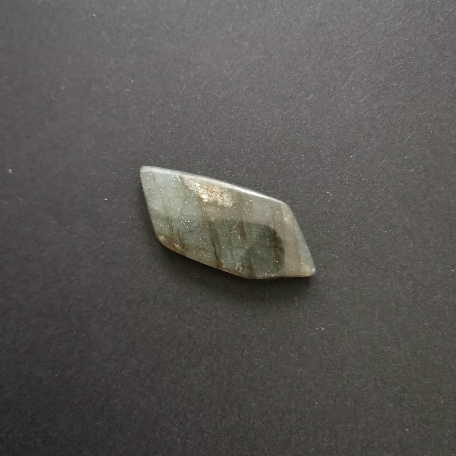 This loose, pre-owned freeform labradorite cabochon, in a very good condition, is ideal for a one-of-a-kind jewellery make with a sustainable edge.
