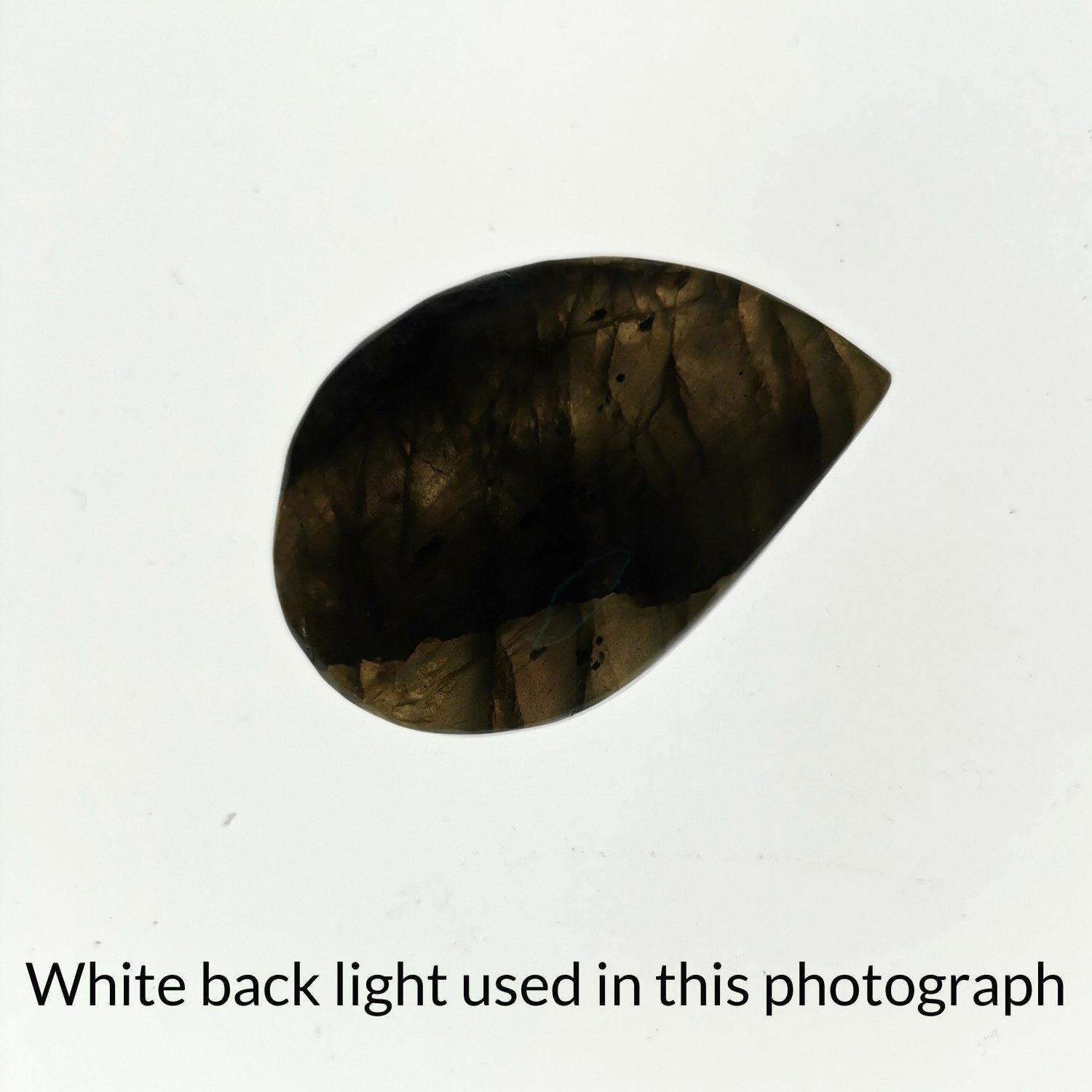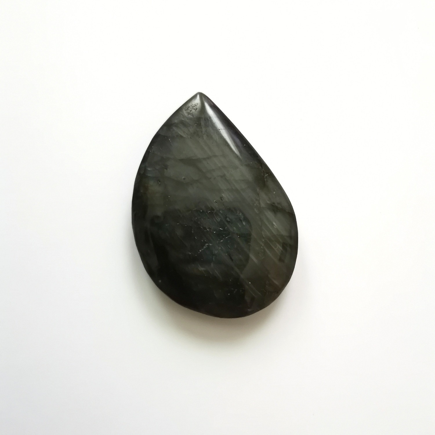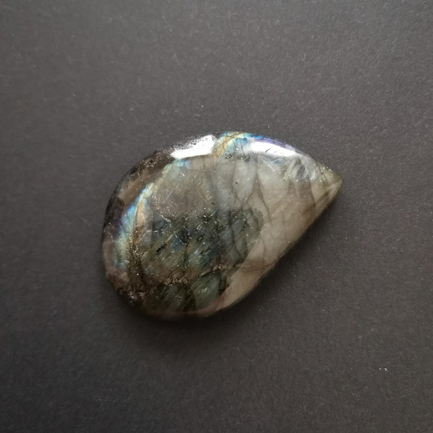 This loose, pre-owned freeform labradorite cabochon, in a good condition, is ideal for a one-of-a-kind jewellery make with a sustainable edge.