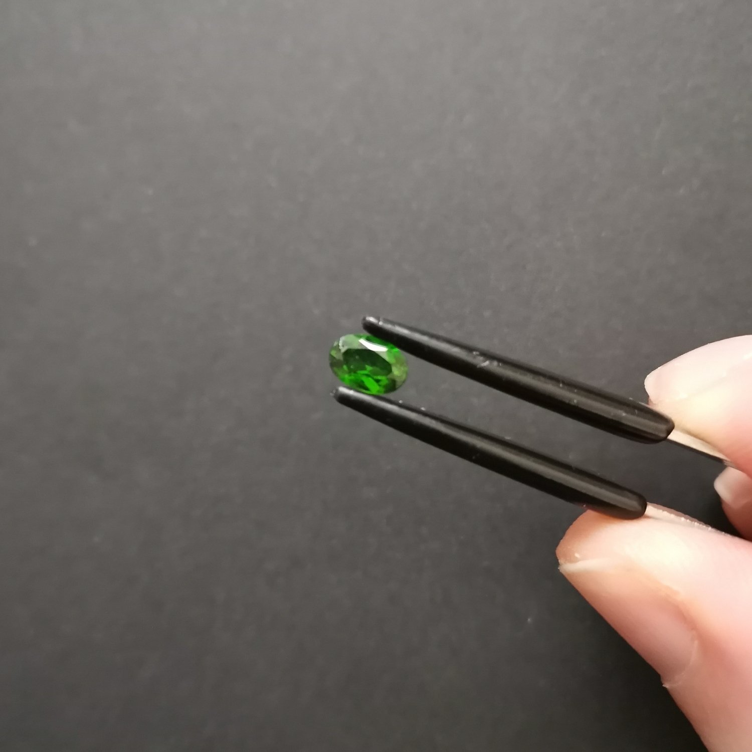 This loose, pre-owned green diopside oval, in a good condition, is ideal for a one-of-a-kind jewellery make with a sustainable edge.