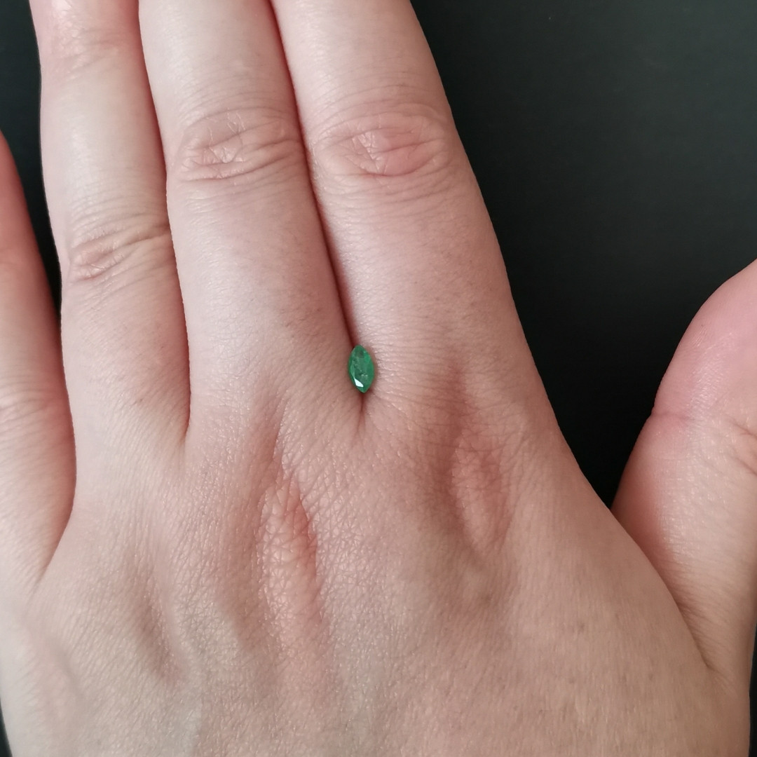 This pre-owned emerald marquise, in a good condition, is ideal for a one-of-a-kind make with a sustainable edge.