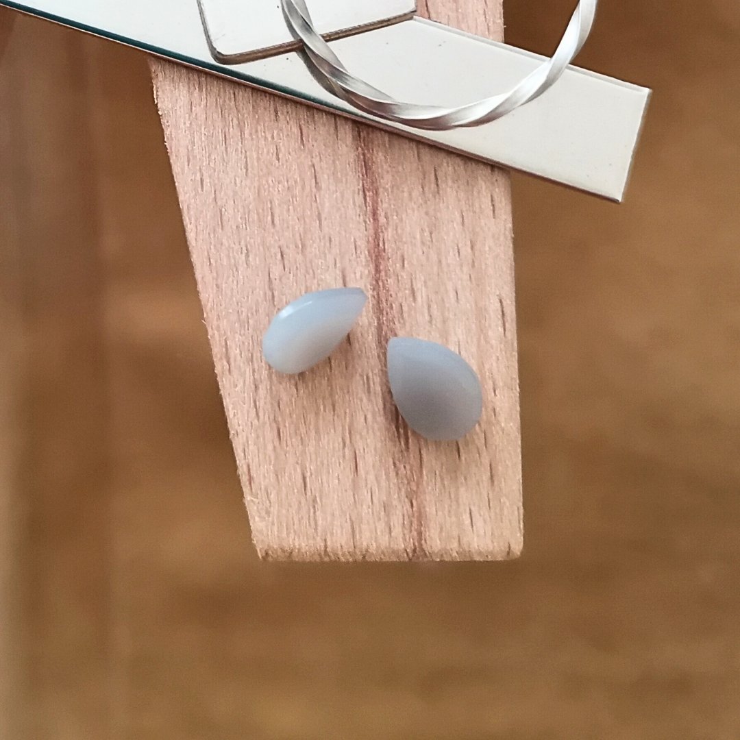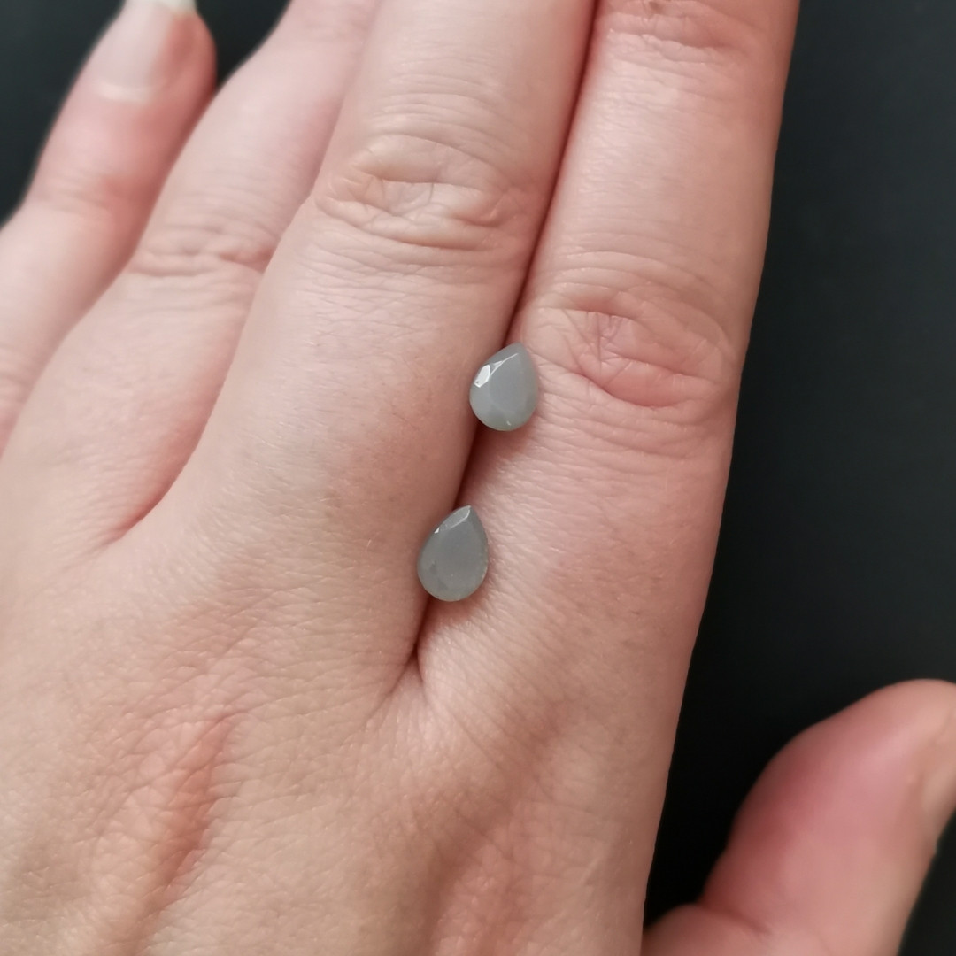2 Grey Moonstone Teardrops – Pair – 7mm