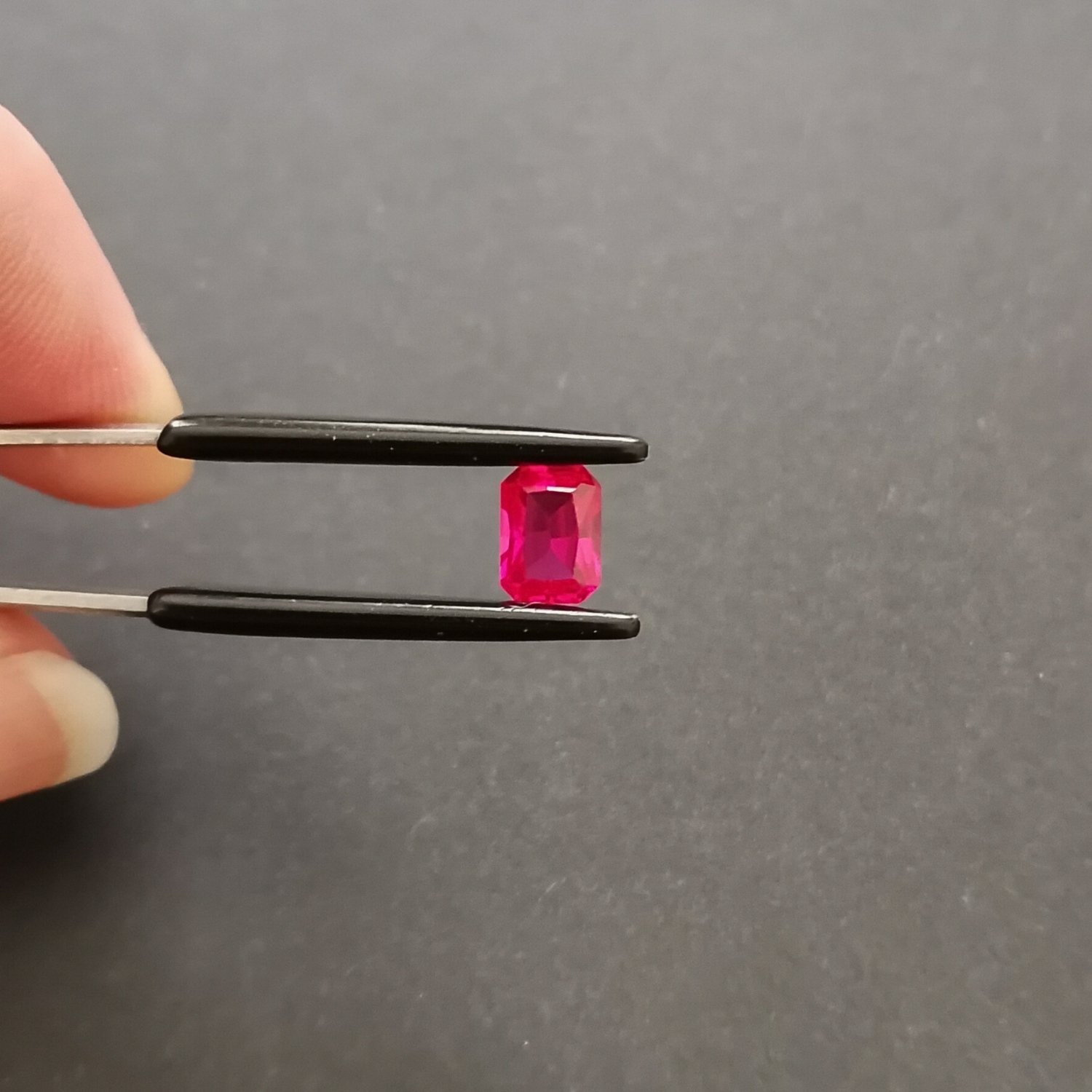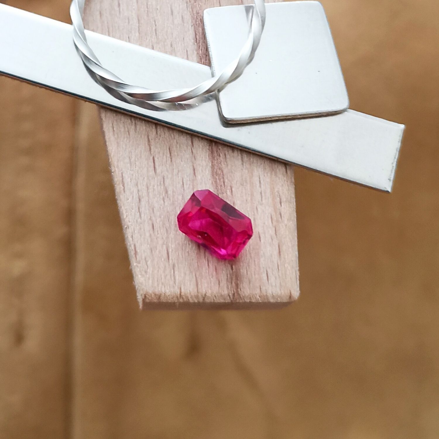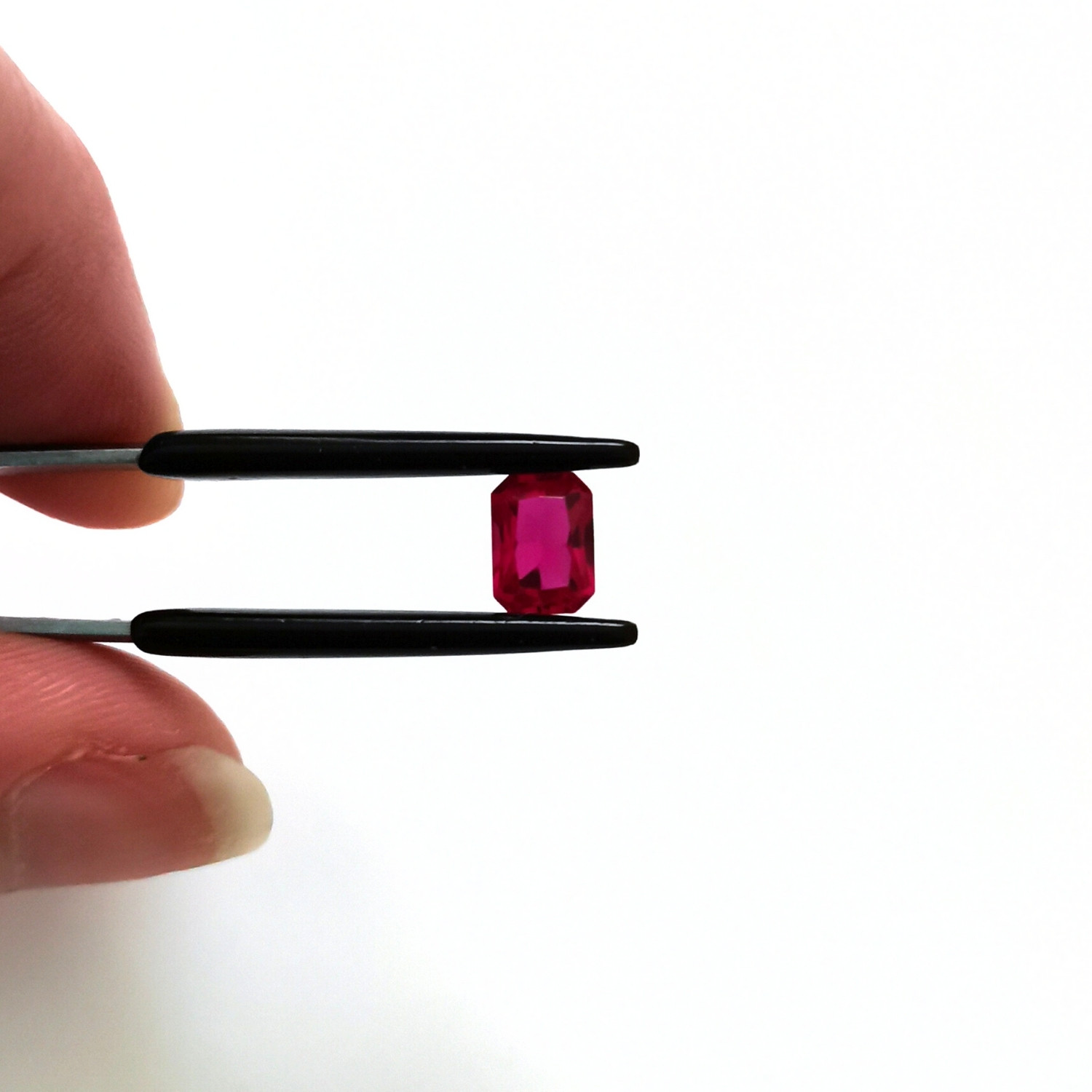 This loose, pre-owned lab grown ruby, in an excellent condition, is ideal for a one-of-a-kind jewellery make with a sustainable edge.