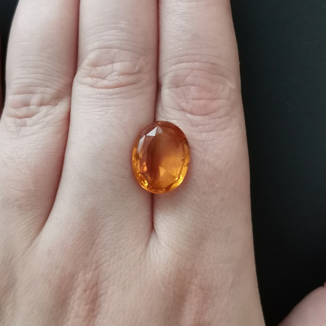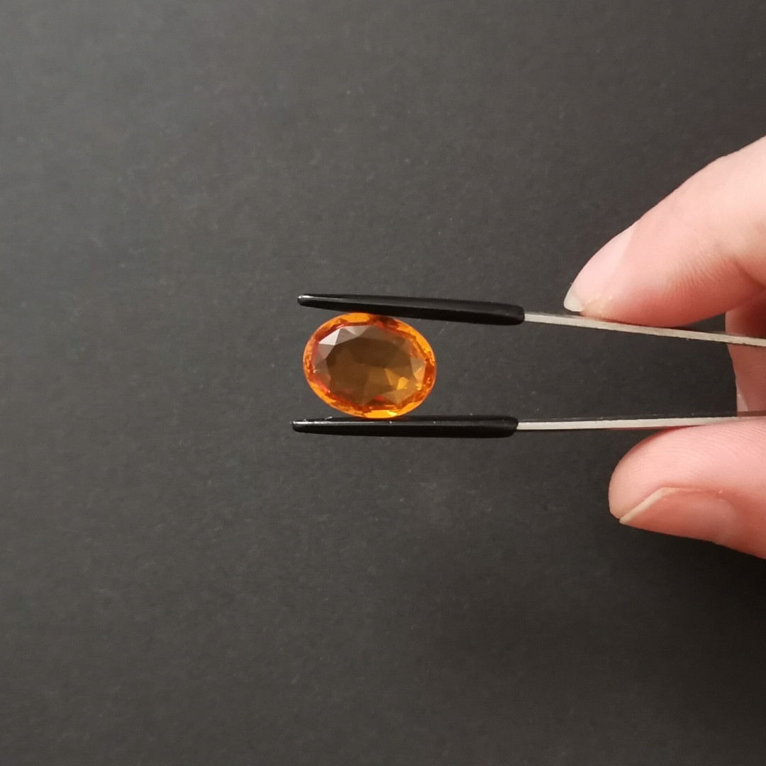 This loose, pre-owned mandarin orange citrine oval, in an excellent condition, is ideal for a one-of-a-kind jewellery make with a sustainable edge.