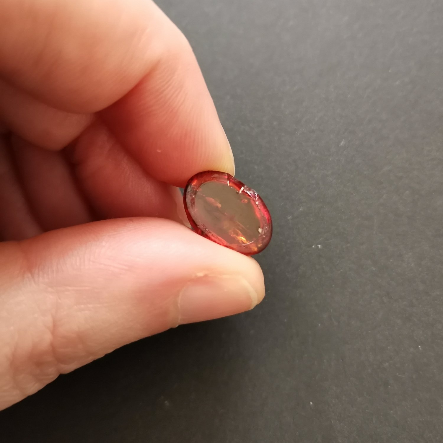 This loose, pre-owned oval amber cabochon, in an ok condition, is ideal for a one-of-a-kind jewellery make with a sustainable edge.