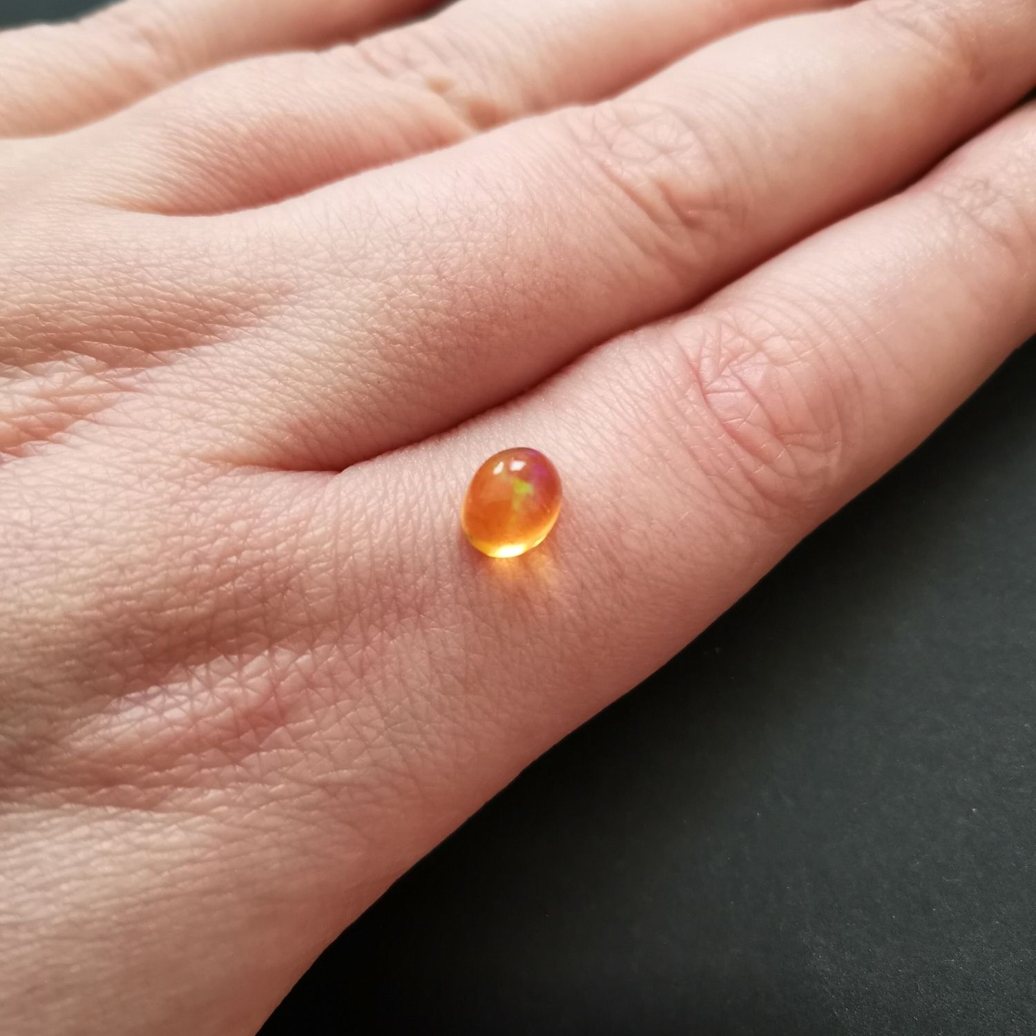 This loose, pre-owned oval fire opal cabochon, in an excellent condition, is ideal for a one-of-a-kind jewellery make with a sustainable edge.