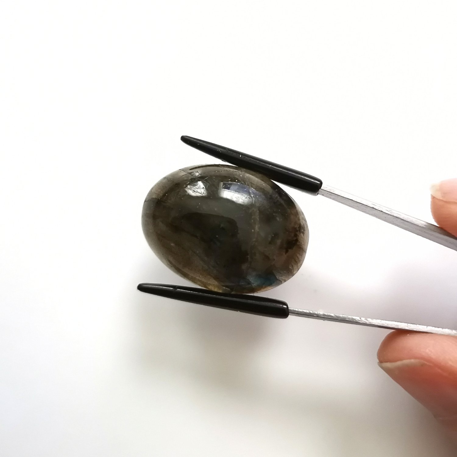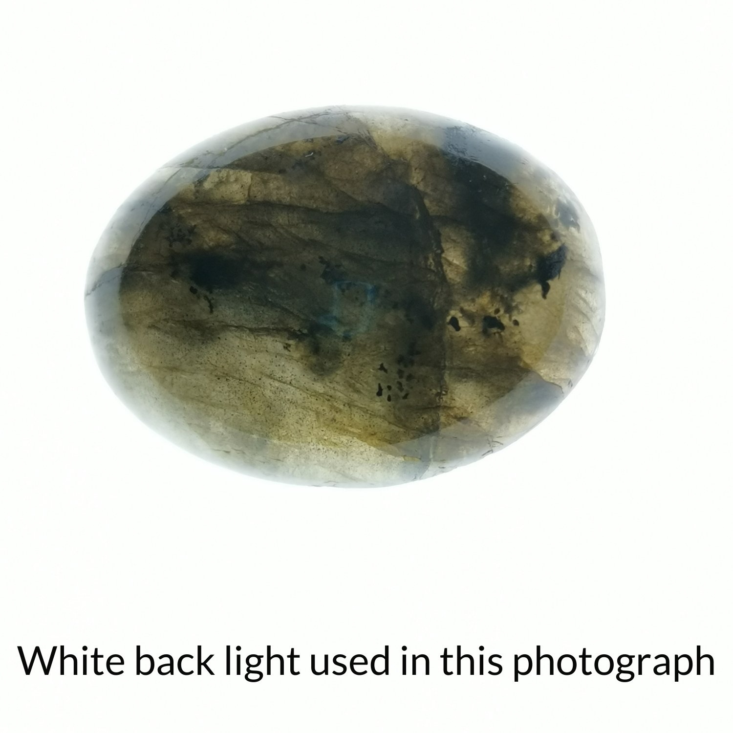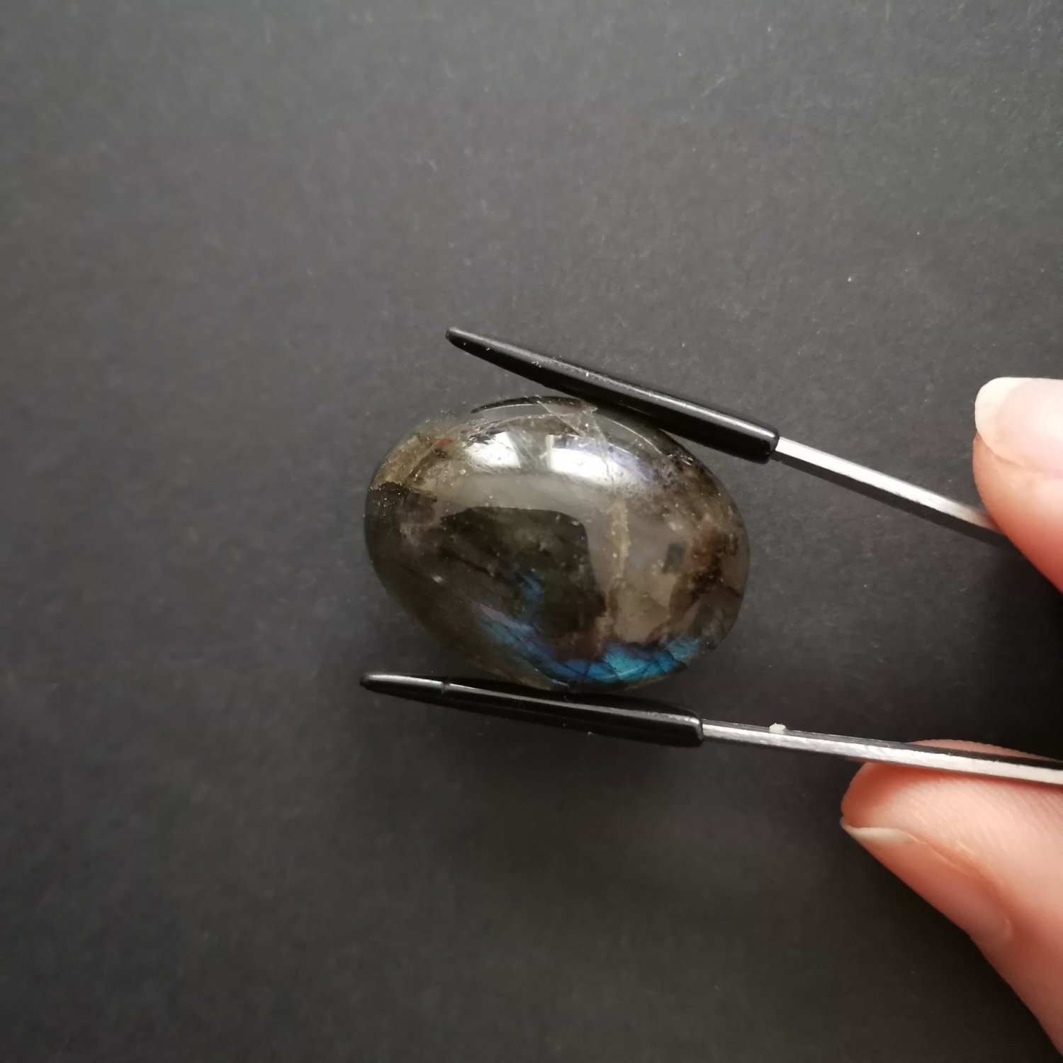 This loose, pre-owned oval labradorite cabochon, in a very good condition, is ideal for a one-of-a-kind jewellery make with a sustainable edge.