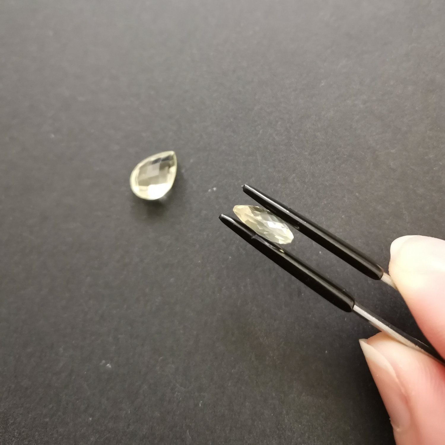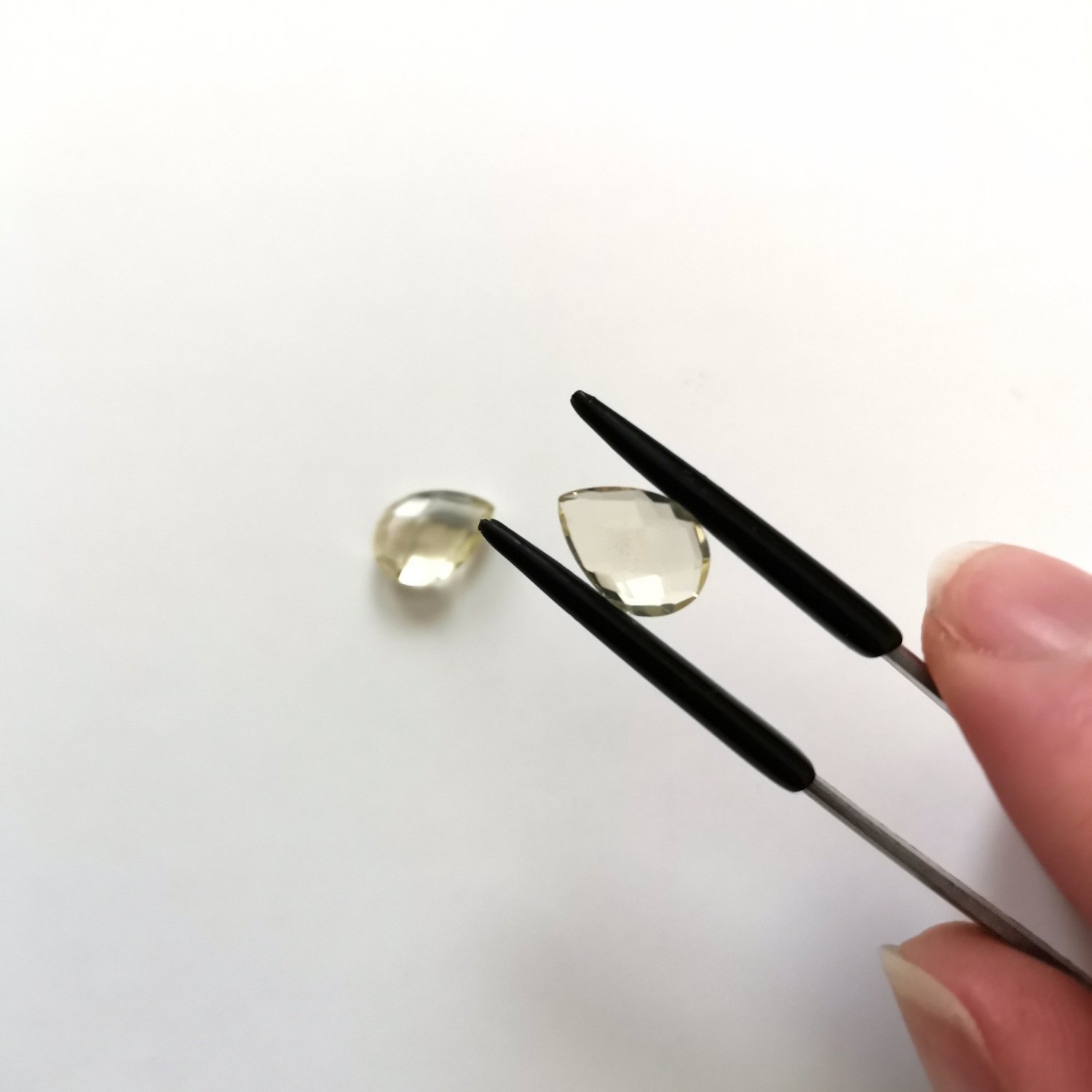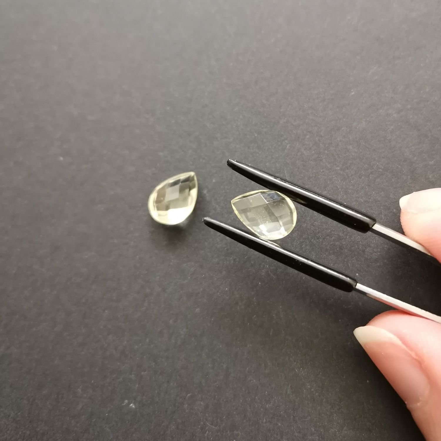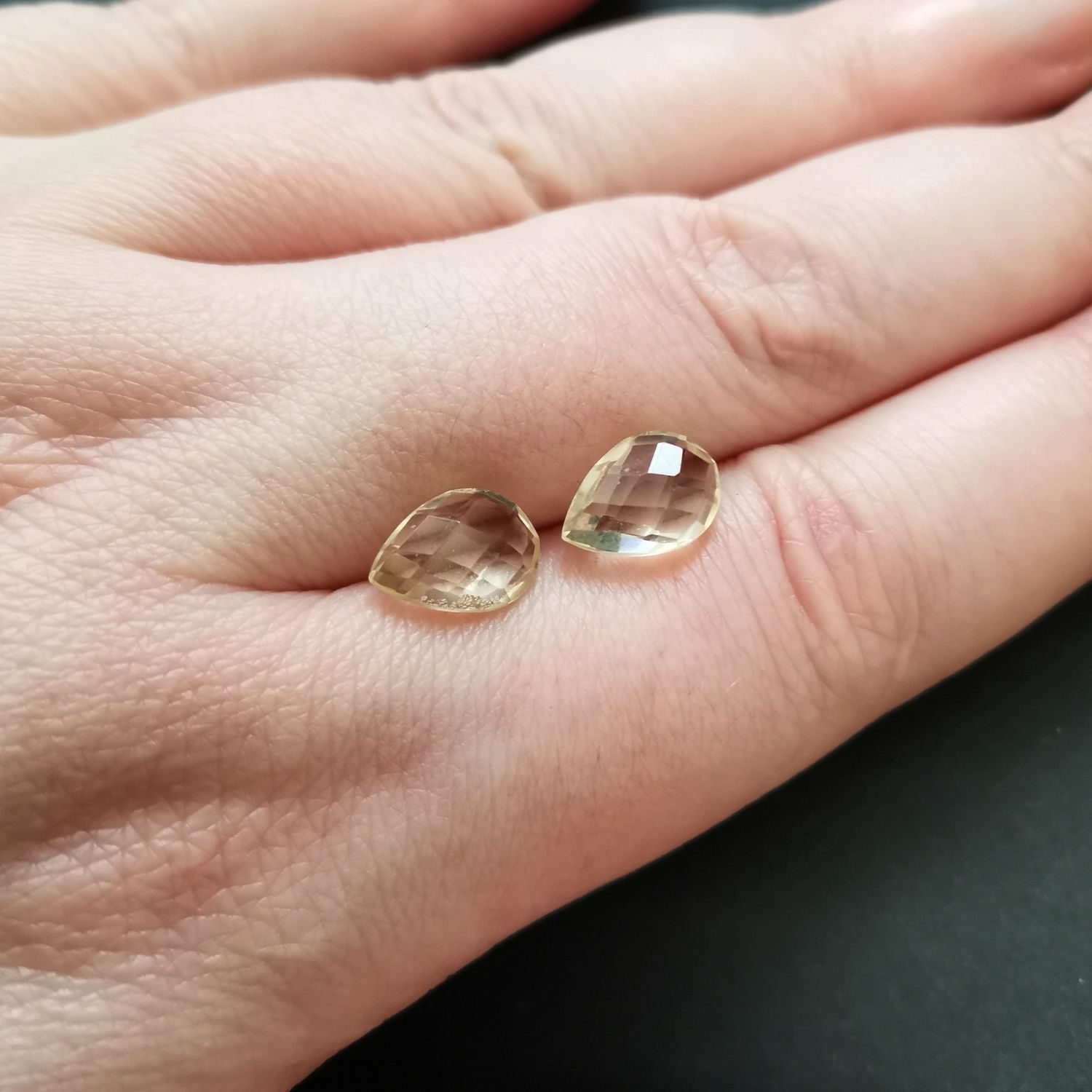 This matching pair of pre-owned faceted lemon yellow citrine teardrops are perfect for a one-of-a-kind earring design with a sustainable edge.