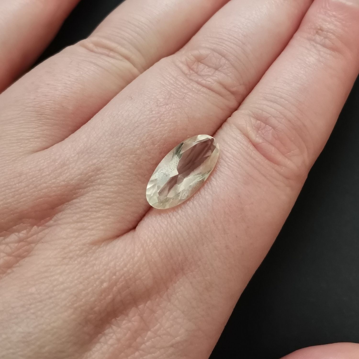 This loose, pre-owned pale citrine oval, in an excellent condition, is ideal for a one-of-a-kind jewellery make with a sustainable edge.