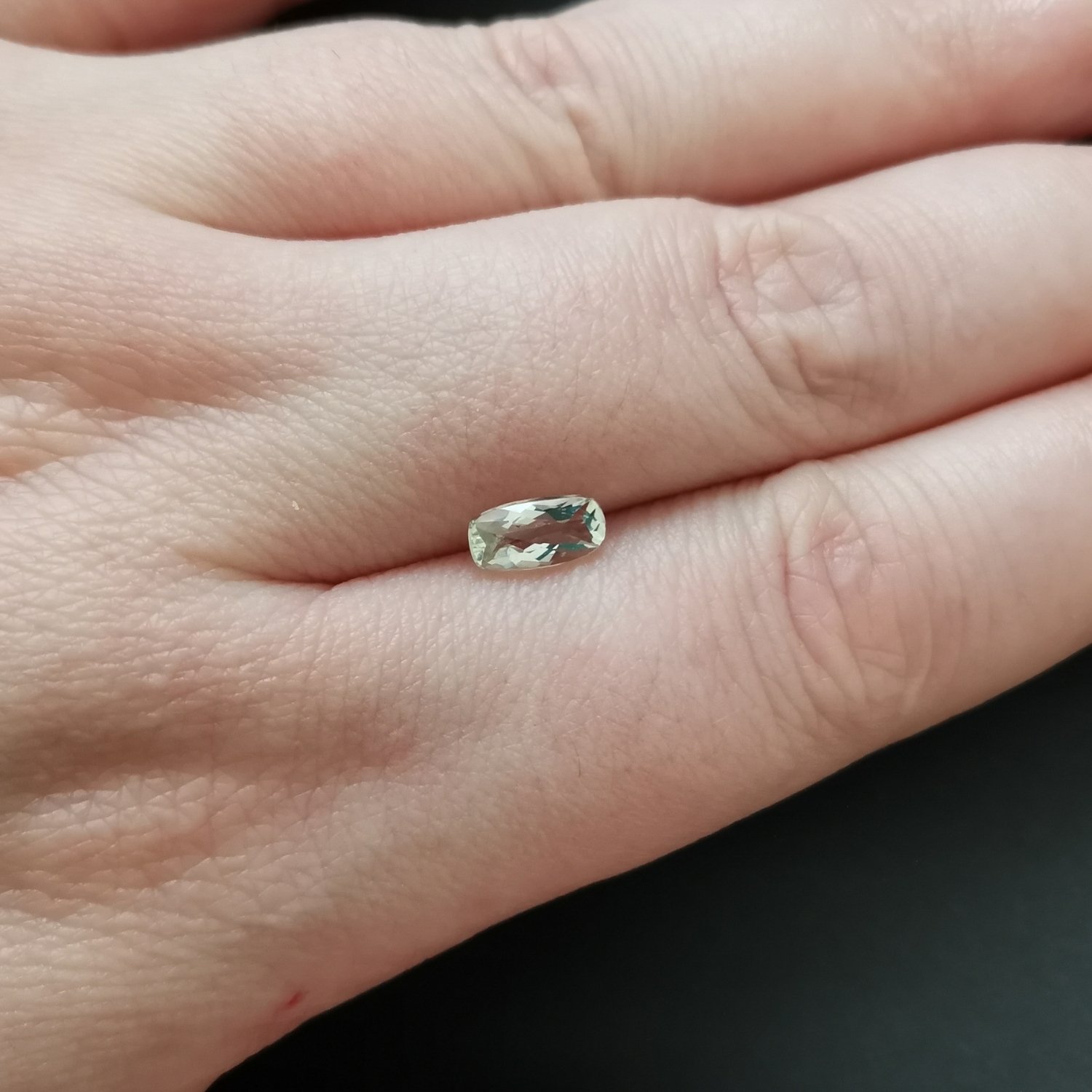 This loose, pre-owned cushion cut prasiolite rectangle, in an excellent condition, is ideal for a one-of-a-kind jewellery make with a sustainable edge.