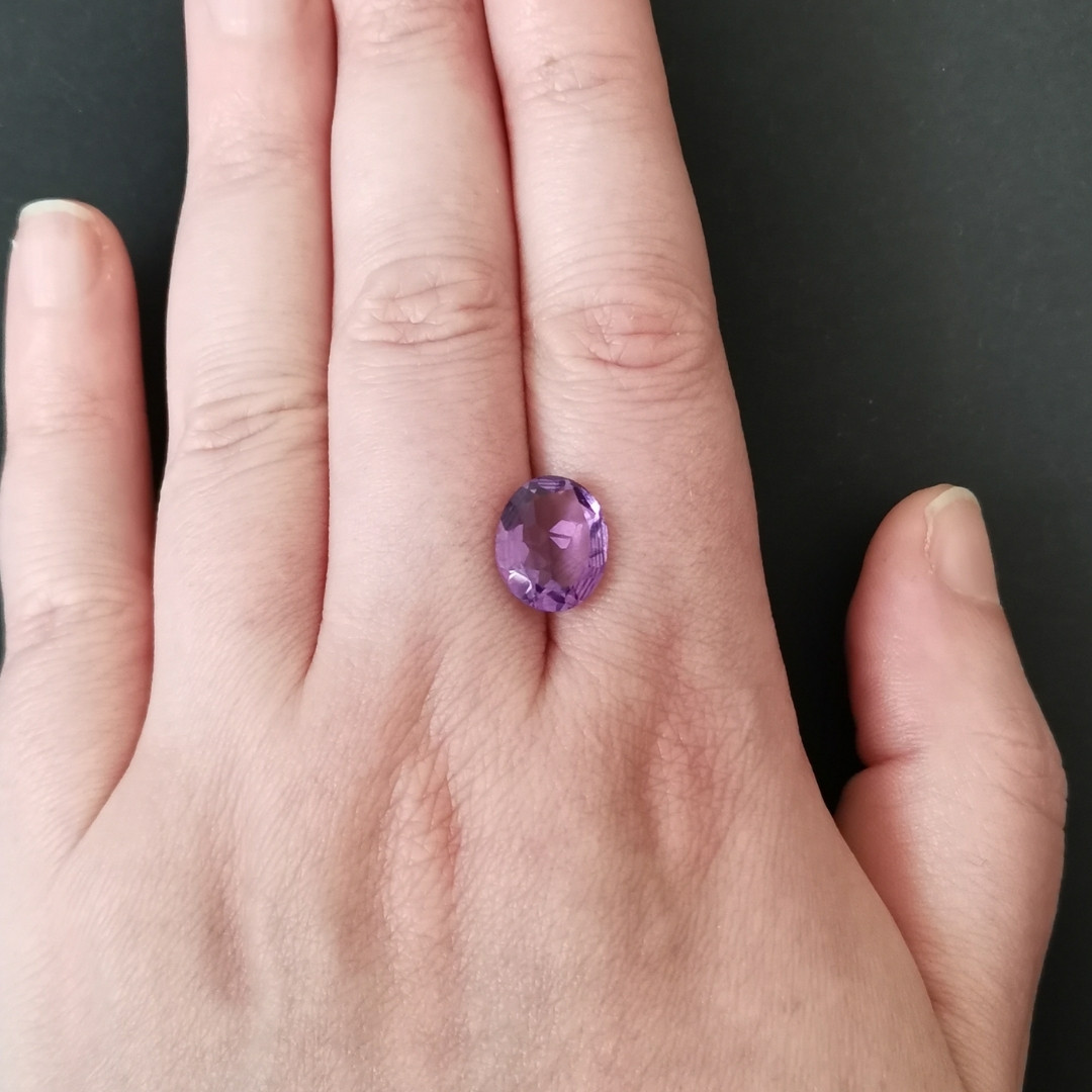 This pre-owned amethyst oval, in a good condition, is ideal for a one-of-a-kind make with a sustainable edge.