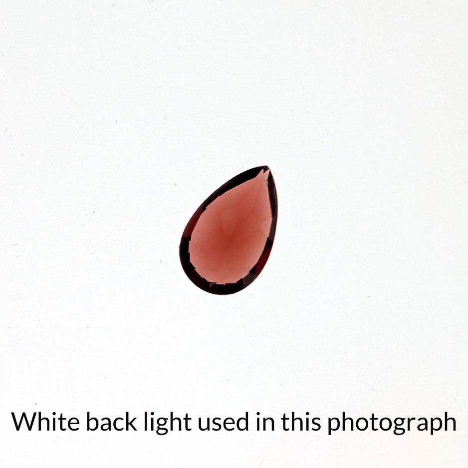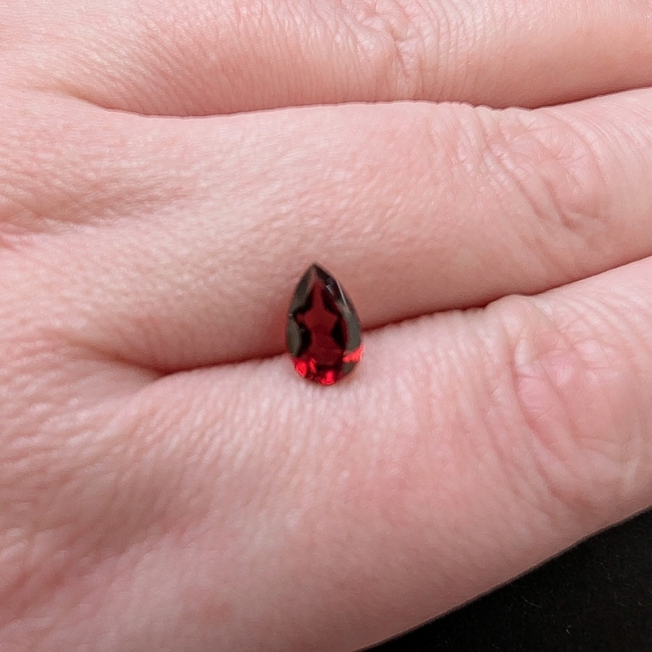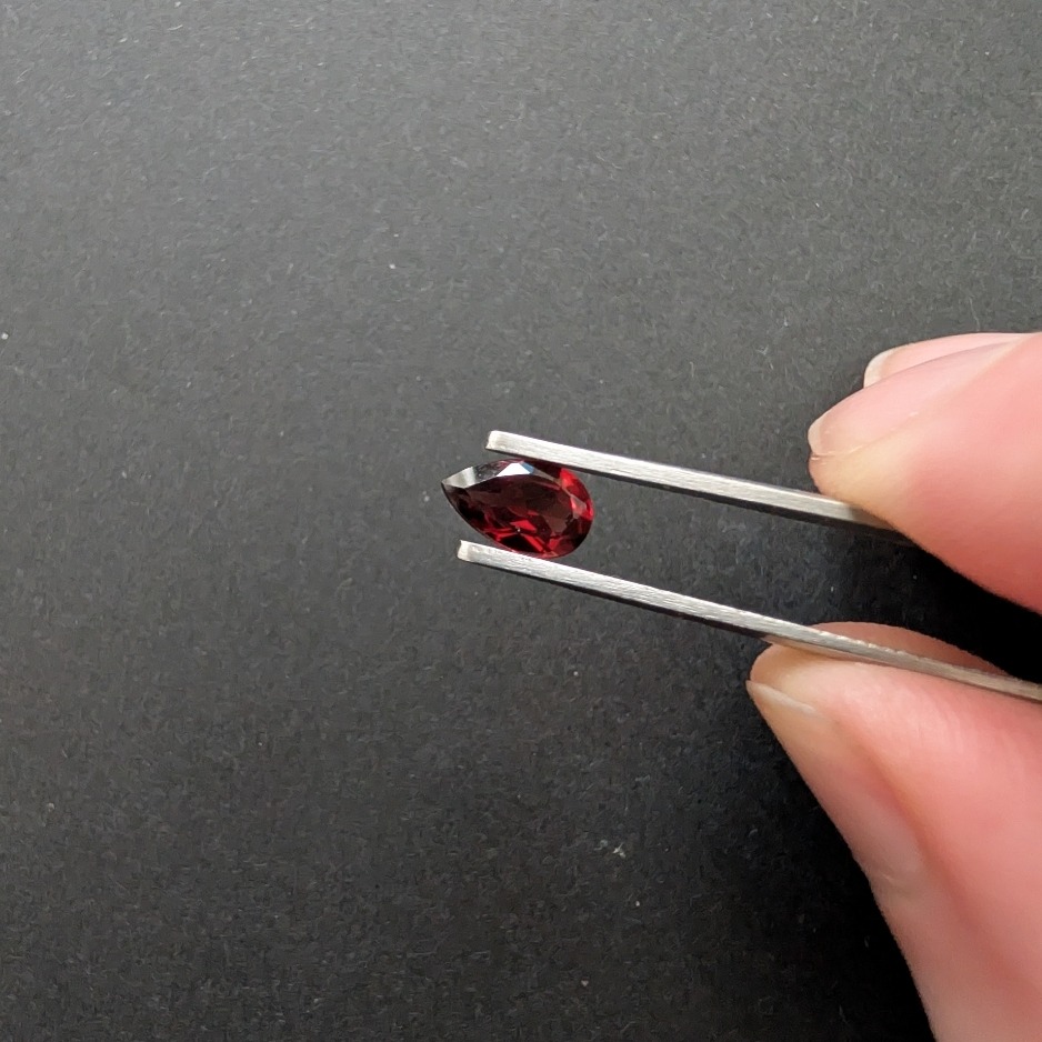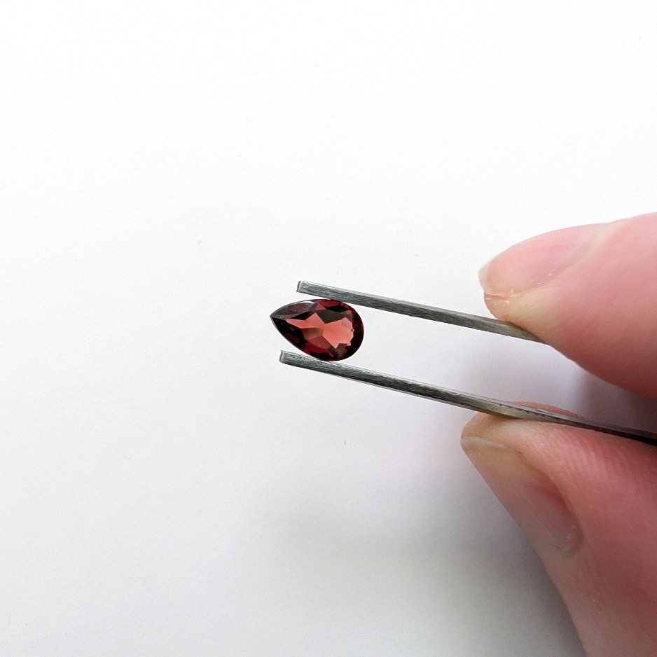 Eye clean, in excellent condition, and finished in a graceful teardrop shape, this pyrope garnet in a slightly orangey red tone is about as good as a pre-owned natural stone gets. Sustainably sourced and untreated, it’s a gem that would slip beautifully into a fine pendant design without needing a single compromise.