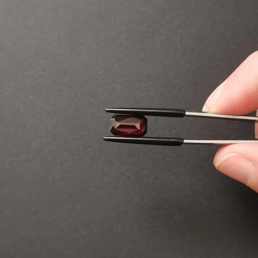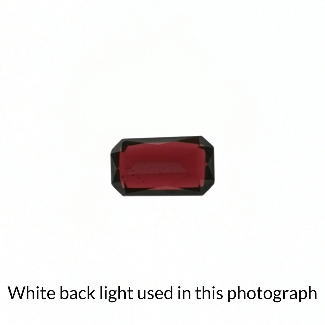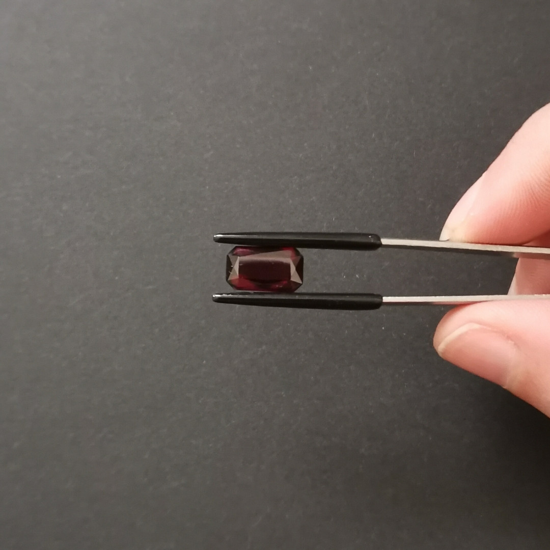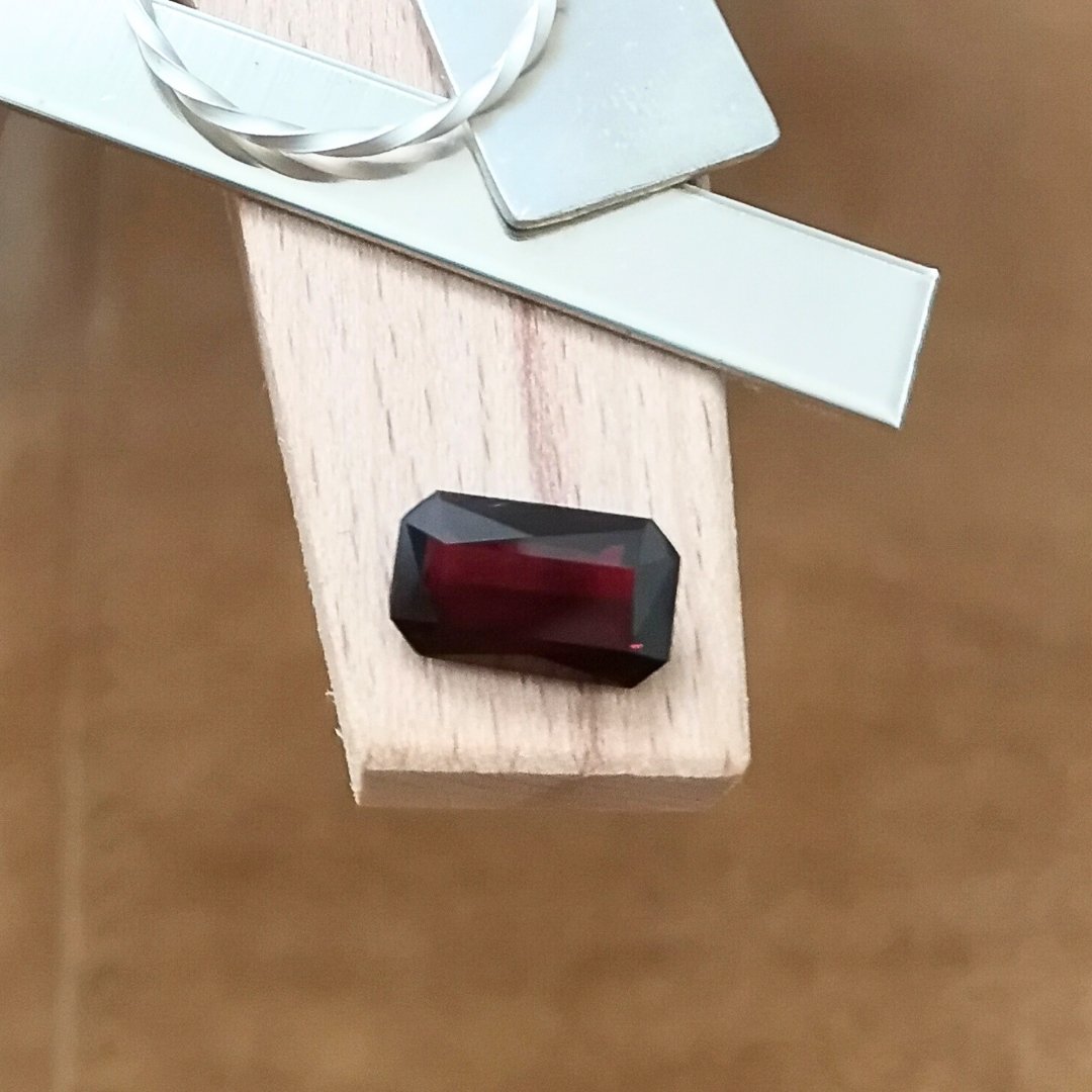 This loose, pre-owned dark red garnet rectangle, in an ok condition, is ideal for a one-of-a-kind jewellery make with a sustainable edge.