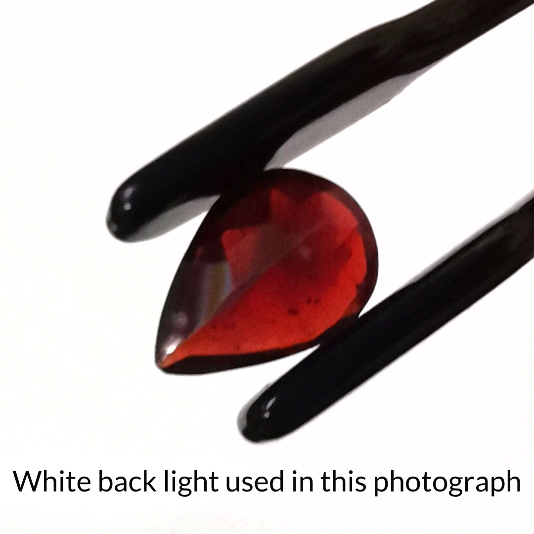 This pre-owned red garnet teardrop, in a good condition, is ideal for a one-of-a-kind make with a sustainable edge.
