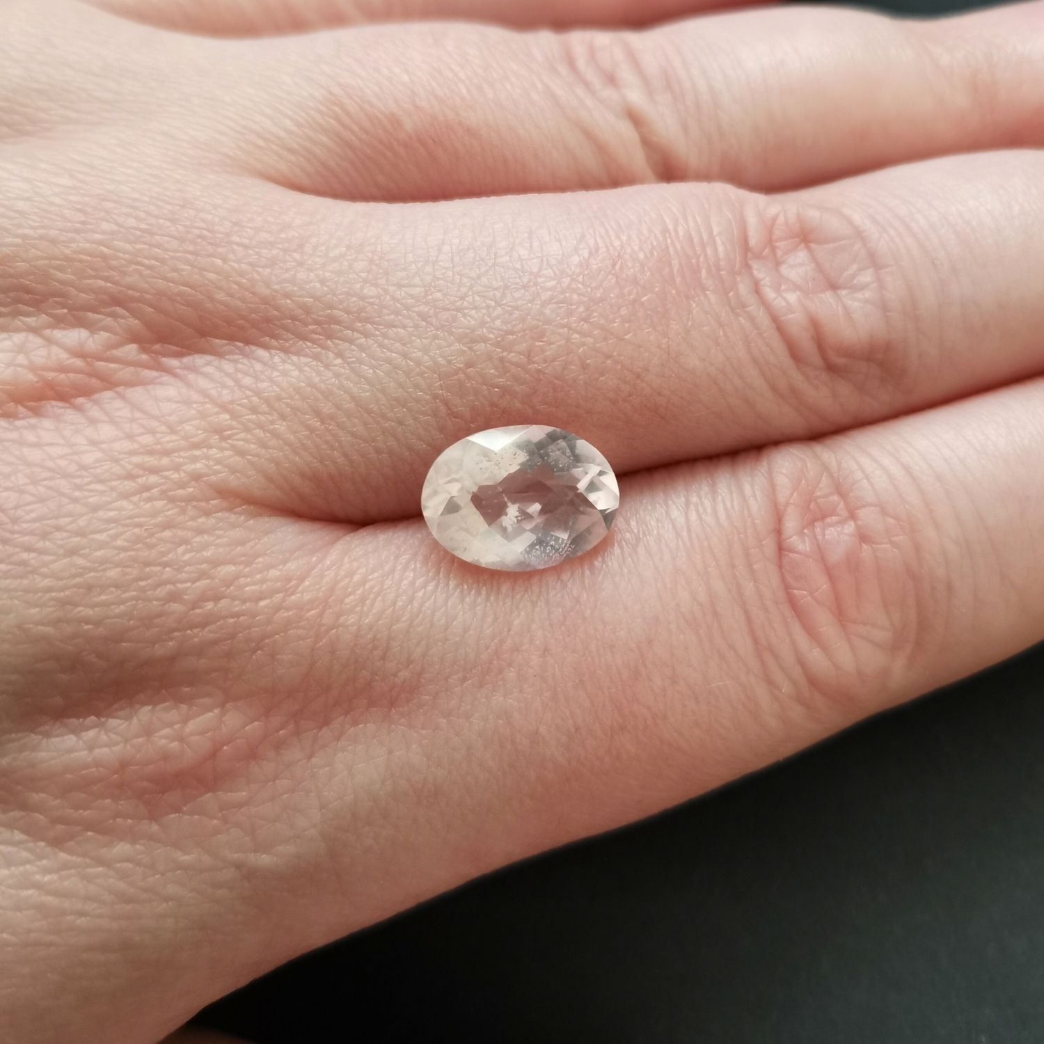 This loose, pre-owned faceted rose quartz oval, in an excellent condition, is ideal for a one-of-a-kind jewellery make with a sustainable edge.