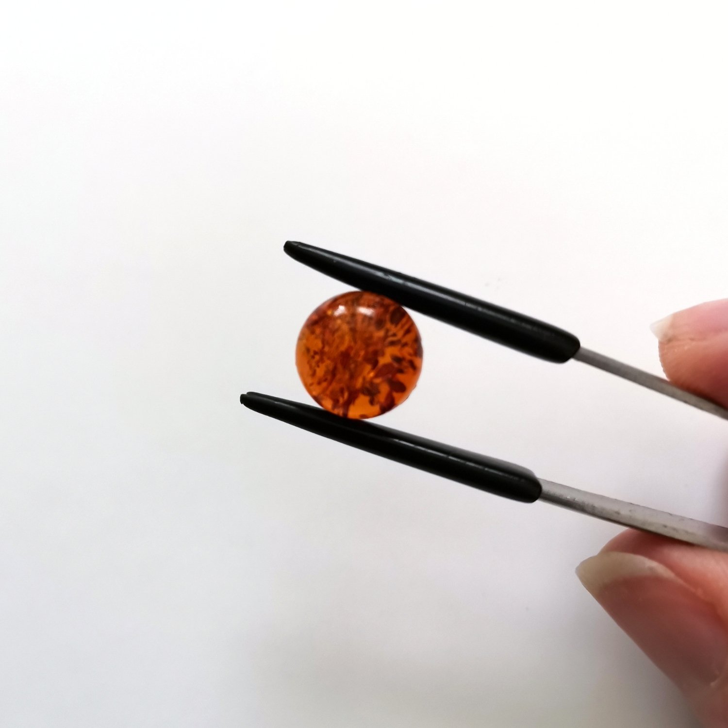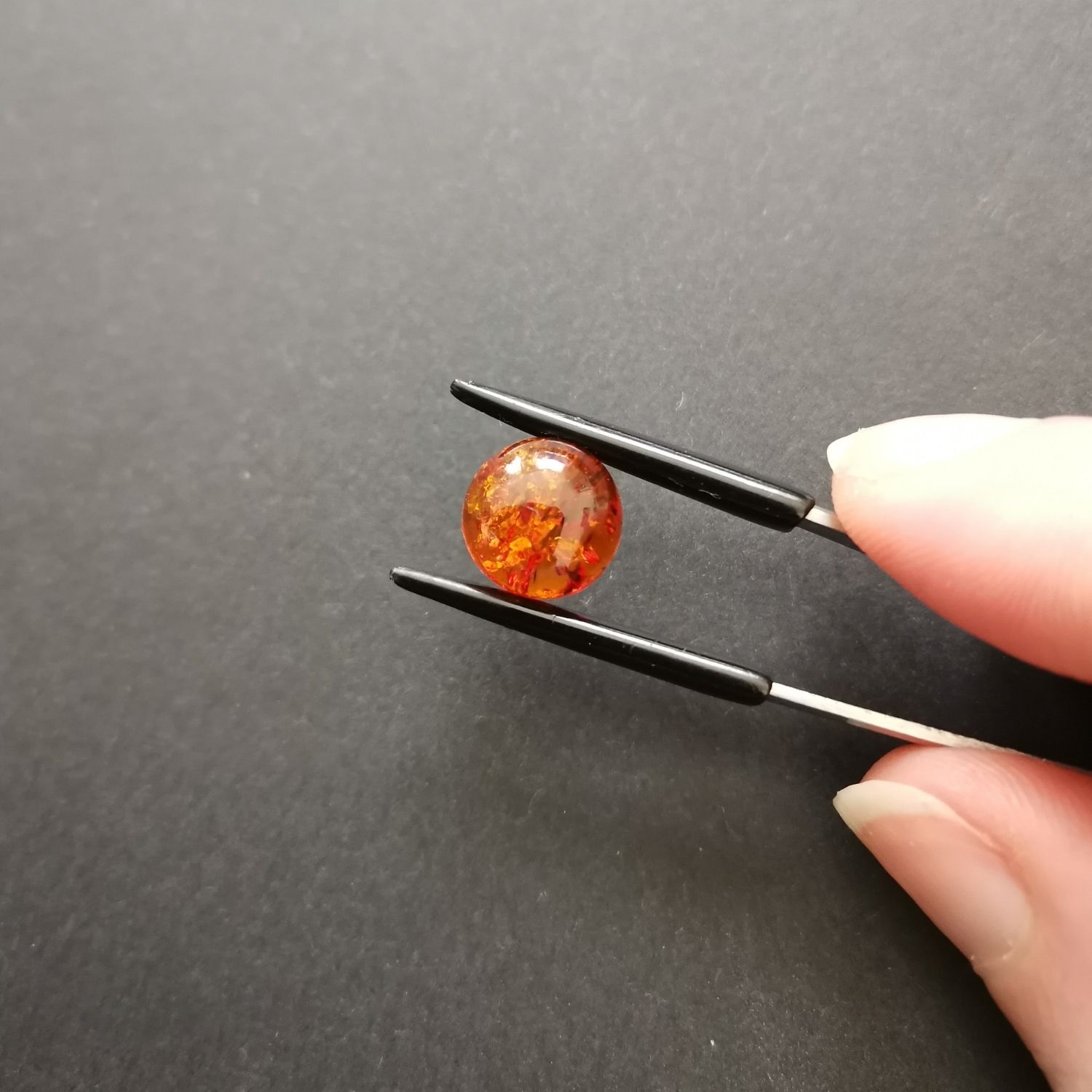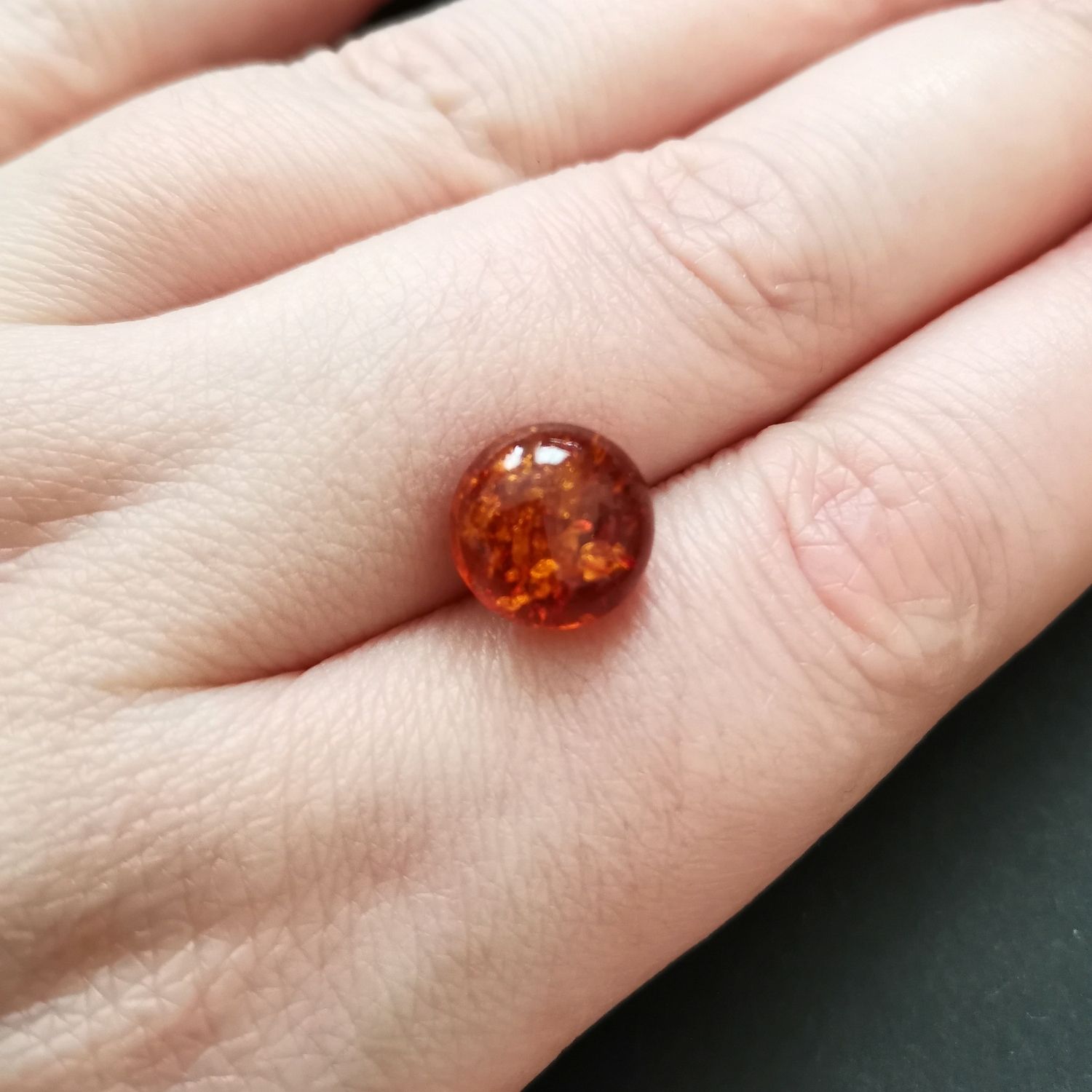 This loose, pre-owned round amber cabochon, in an ok condition, is ideal for a one-of-a-kind jewellery make with a sustainable edge.