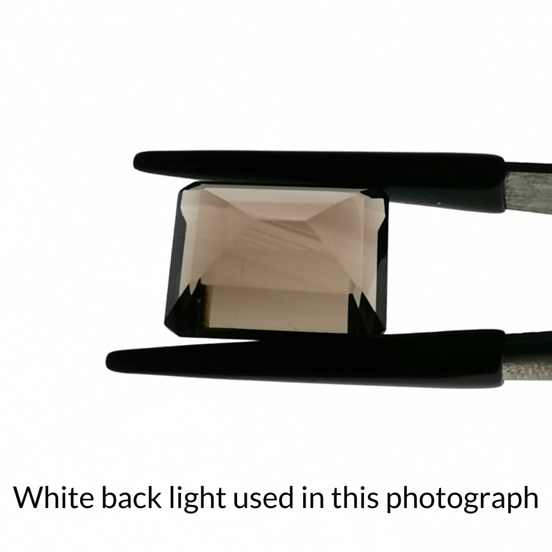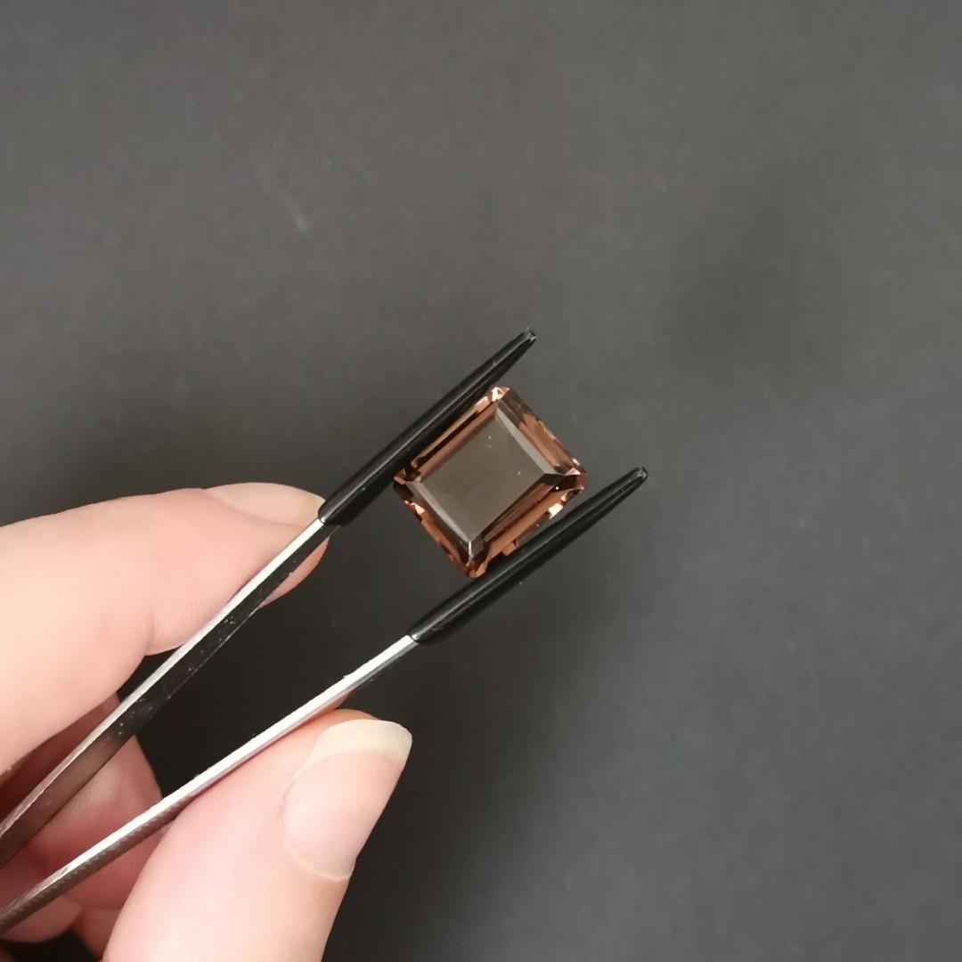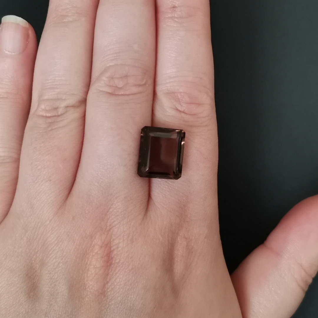 This loose, pre-owned brown smoky quartz rectangle, in a very good condition, is ideal for a one-of-a-kind jewellery make with a sustainable edge.