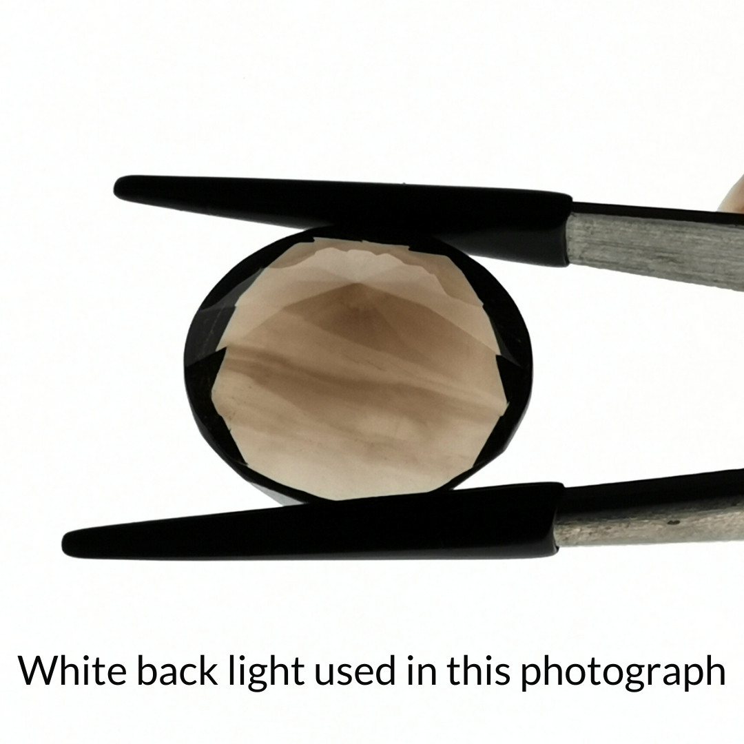 This loose, pre-owned round smoky quart, in a good condition, is ideal for a one-of-a-kind jewellery make with a sustainable edge.