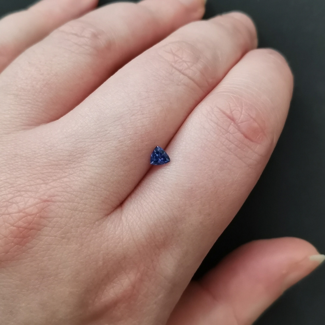 This loose, pre-owned trillion cut tanzanite, in a very good condition, is ideal for a one-of-a-kind jewellery make with a sustainable edge.